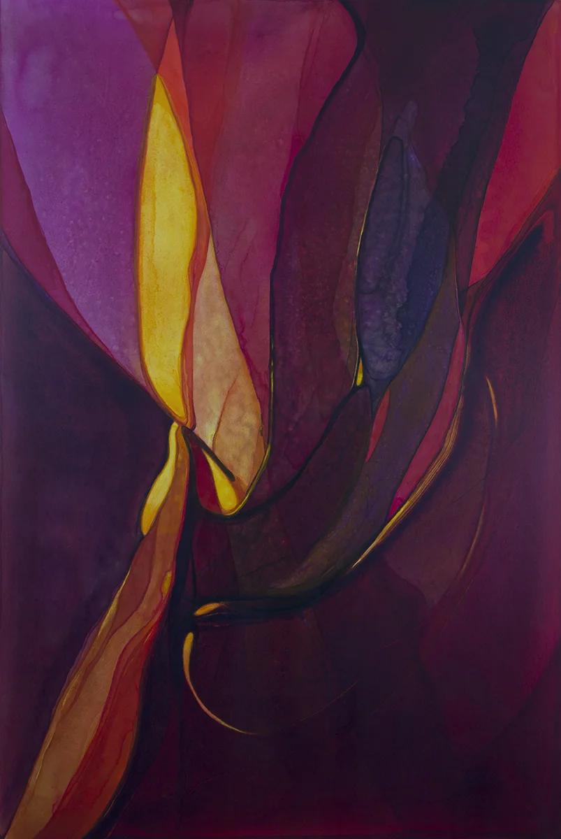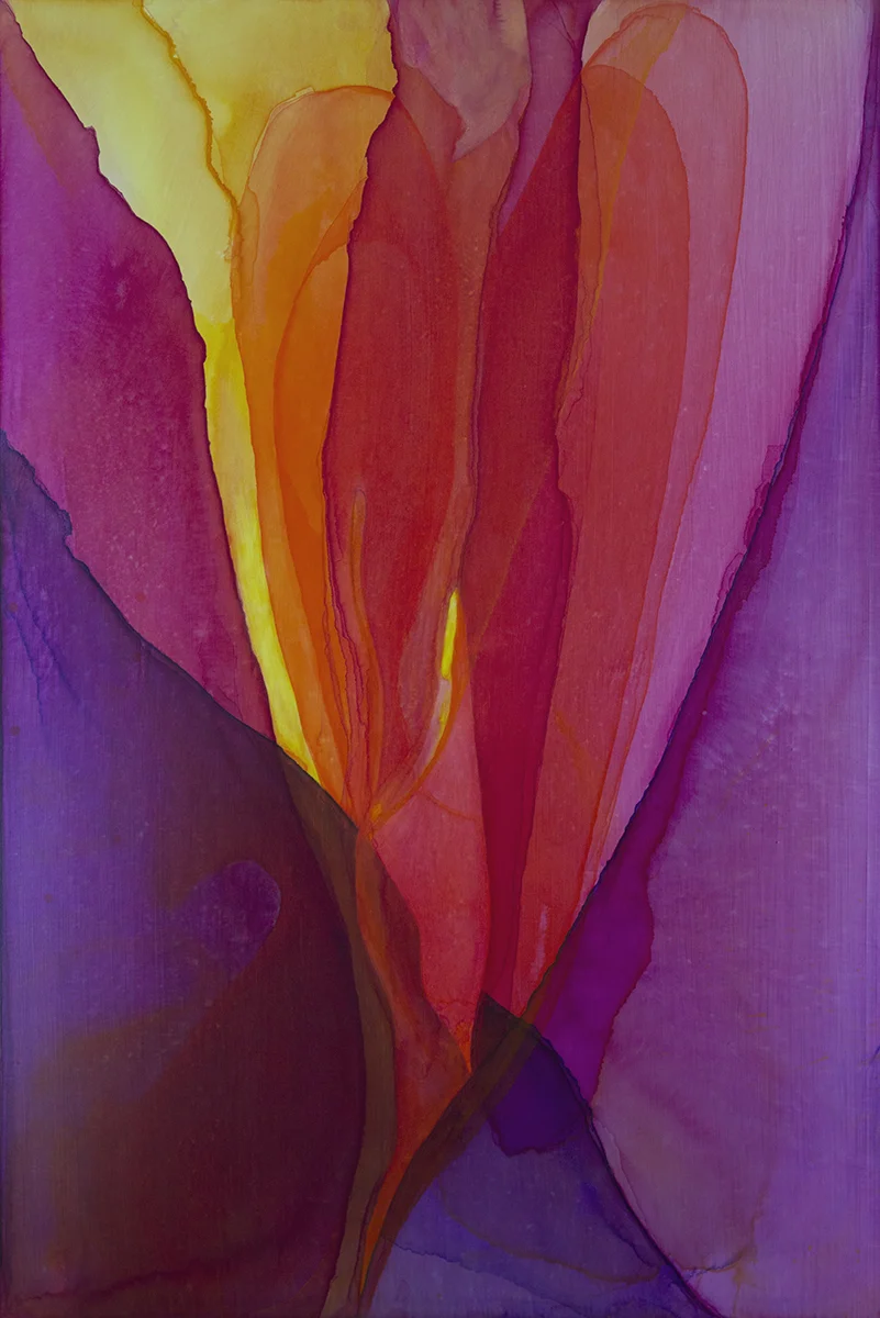 I looked to both Rothko after a recent trip to the Rothko Chapel and to Georgia O'Keefe after reading an excellent biography of her life. Both artists, albeit very different, were masters of light. The last piece in the series, Slow Burn, I finished in the dark after Caravaggio, another master of light who painted by candlelight in order to get a chiaroscuro effect. This warm color palette originated from some amazing photographs of Antelope Canyon, a place I think I really need to visit soon.